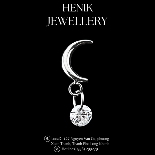 MOON SHAPE WITH DANGLING ROUND GEM - TITANIUM